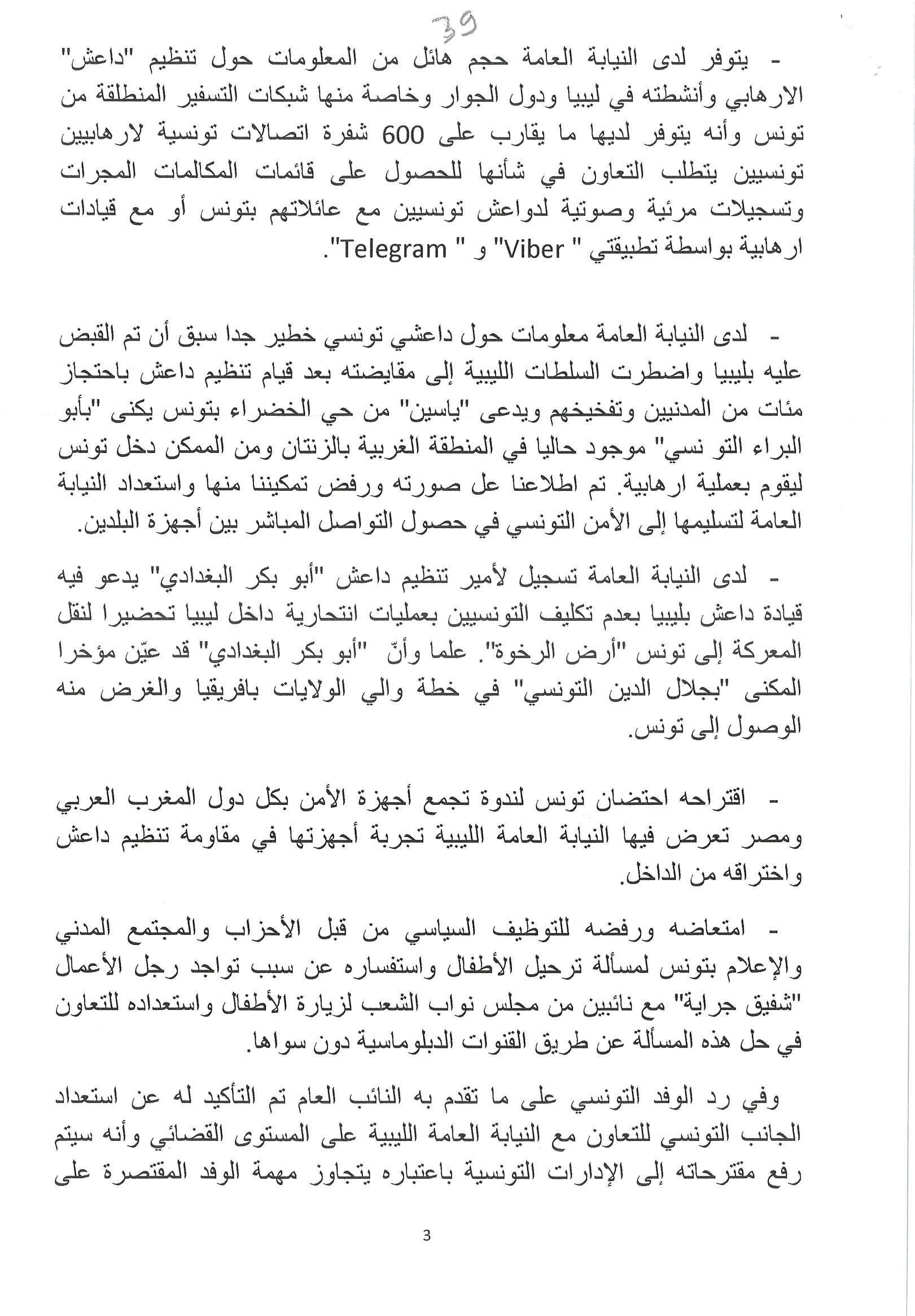 · Des données sur les mouvements des terroristes à la frontière tunisienne. Données sur lesquelles, la partie libyenne ne s’étendra pas, mais elle contient des informations qui auraient pu éclairer l’attaque de Ben Guerdane.